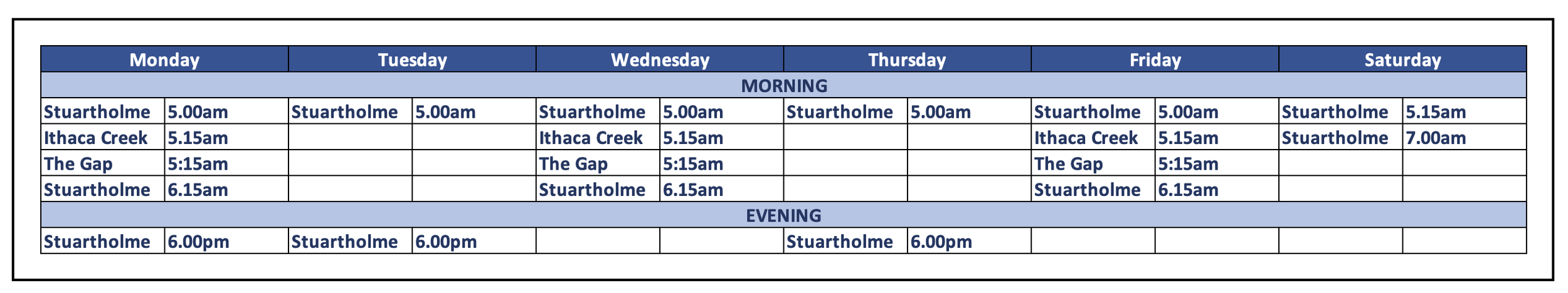 Want to see what you’re getting yourself into? Here’s some examples of our recent programs. We always adjust the distances and time cycles according to your fitness, experience, or your niggly knee.